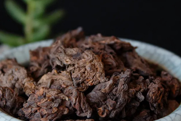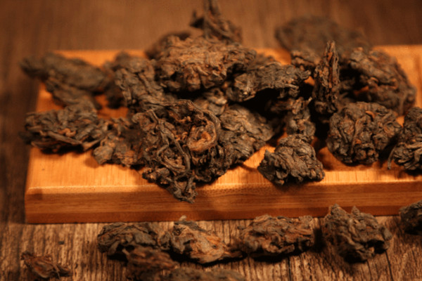 老茶头是普洱茶在人工渥堆发酵环节产生的茶块,也叫作老疙瘩或自然沱,严格来说是普洱熟茶的派生茶,虽然质地相对较硬,不过含有丰富的果胶,冲泡时也有普洱熟茶的醇厚和甜润,非常耐泡,哪怕经过多次冲泡,茶叶也不会变散,仍然是最初冲泡的样子。