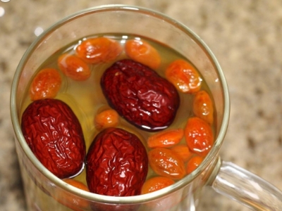 取红枣两三颗,撕开后放进杯子,然后再放入十五粒左右枸杞,接着倒入开水冲泡。如此,这样一杯红枣枸杞茶,益气补血、美容养颜,尤其适合经期女性饮用。但不管是什么茶,女性在经期都是不宜喝浓茶的。