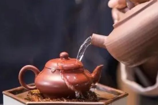 11、润茶:(甘泉润茶至:“润茶”也叫“温润泡”,高注沸水入壶,使水满溢出。适用于某些外形比较紧结的茶叶,潮汕功夫茶都用乌龙茶、普洱茶等。同时温润泡可以提升茶体的温度,利于茶香的发挥。)