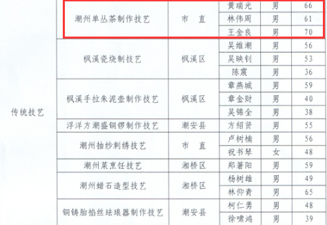 潮州市第三批省级非物质文化遗产代表性传承人名单