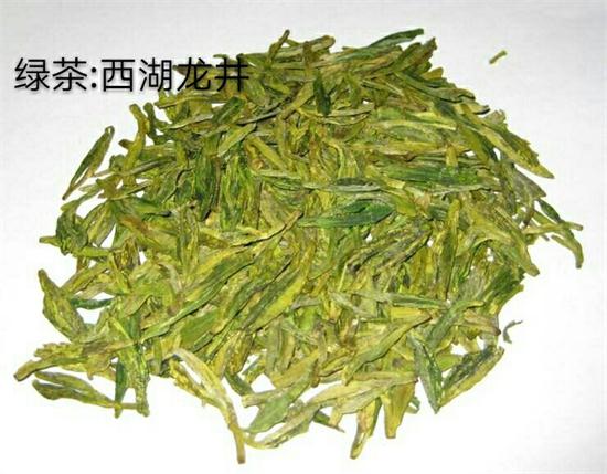 2、西湖龙井茶:扁平光滑挺直,色泽嫩绿光润,香气鲜嫩清高,滋味鲜爽甘醇,叶底细嫩呈朵。
