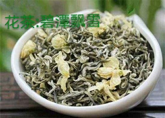 12、碧潭飘雪:是一种花茶,产于四川峨眉山。叶似鹊嘴,形如秀柳,汤呈青绿,清澈得叶片可数。水面点点白雪,色彩有对比,淡雅适度,此茶不仅淳香可口,更有观赏价值。