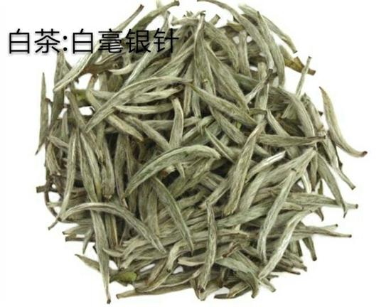 4、白豪银针:鲜叶原料全部是茶芽,制成成品茶后,形状似针,白毫密被,色白如银。其针状成品茶,长约三厘米。