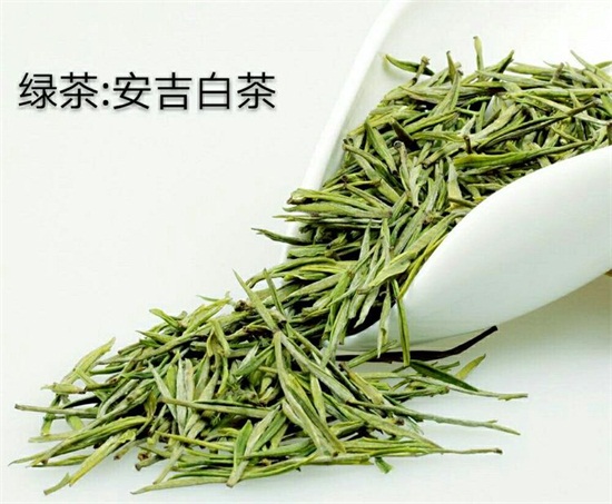 17、安吉白茶:外形挺直略扁,形如兰蕙;色泽翠绿,白毫显露;叶芽如金镶碧鞘,内裹银箭,十分可人。冲泡后,清香高扬且持久。滋味鲜爽,饮毕,唇齿留香,回味甘而生津。叶底嫩绿明亮,芽叶朵朵可辨。