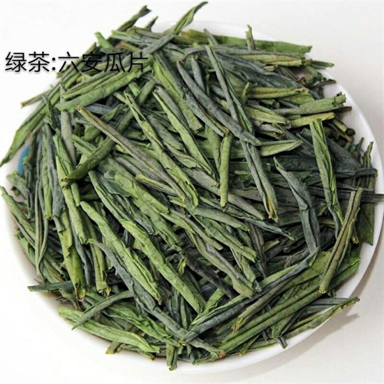 15、六安瓜片:外形似瓜子形的单片,自然平展,叶缘微翘,色泽宝绿,大小匀整,不含芽尖、茶梗,清香高爽,滋味鲜醇回甘,汤色清澈透亮,叶底绿嫩明亮。是一款无芽无梗的茶叶,由单片生叶制成。
