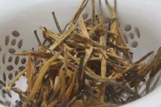 大多数滇红干茶的颜色其实呈红褐色或褐色,但有一种由芽头制成的品类唤作"金针",顾名思义,其外形整体呈金黄色,形如针般细长。