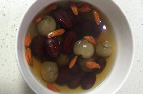 搭配:红枣、枸杞、菊花、干山楂、干桂圆适量,水烧开后放入材料,煮5分钟即可饮用(白天、饭后喝)。