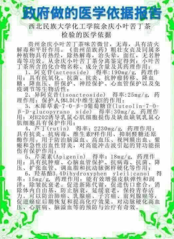 喝茶是一个十分健康的习惯,但如果有人告诉你,喝某某茶可以包治百病,切莫相信。茶叶中虽然富含人体所需的多种氨基酸、维生素及微量元素,但发挥不出药物的治病功能。今天顺茶网就来分享一则余庆苦丁茶骗局。