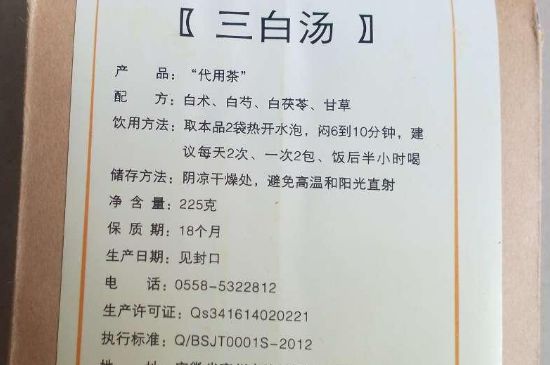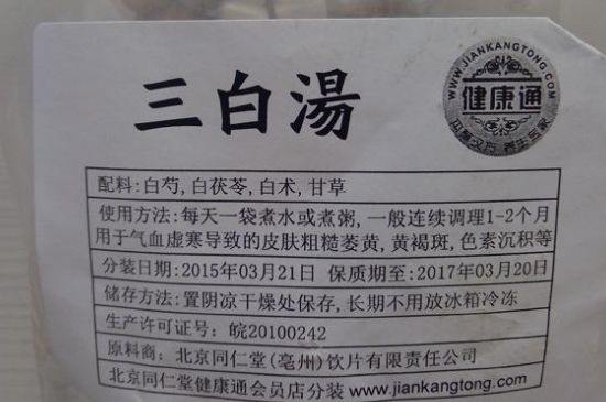 三白茶的原方叫三白汤,用料为白芍、白术和白茯各5g,甘草2.5g,最初是治疗伤寒虚烦的方子,有补益气血的作用,气血充足的话,皮肤自然就好了。