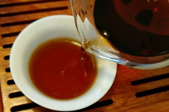 第一泡之前需要醒茶,用90度左右开水冲泡3秒后迅速倒掉。洗茶可以使六堡茶中的茶多酚、氨基酸、茶多糖等有益成分大量释出,但要是醒茶时间太长,这些成分就会随着洗茶水大量流失,所以不宜超过3秒。如果是六堡茶砖茶,喝之前则需要先拨开并放置半个月。