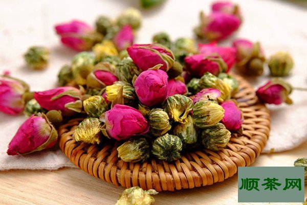玫瑰花和茉莉花是最常见的搭配方式,这两种花朵都是香味浓郁的芳香类植物,一同冲泡饮用时不仅有美容养颜的作用,对胃部和肝脏也有一定的滋补。