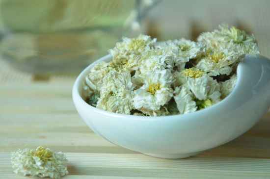 依照自己对菊花茶浓淡的喜好层度,加入适量干菊花放进茶杯里,也可以依照茶杯的大小来考虑菊花的朵数。