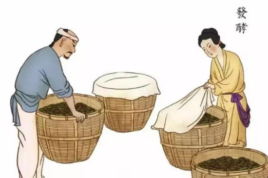 9、干燥:将茶坯放在竹席上或簸箕内,摊厚2至3厘米,中途翻运3至5次,晒至7成干,上烘笼用炭火烘至足干。