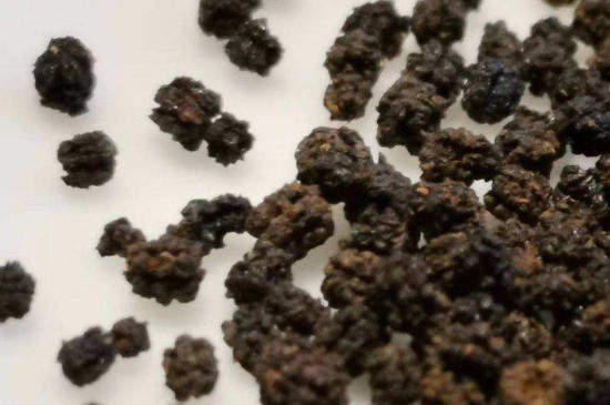 虫茶,呈黑褐色,颗粒状,像油菜籽般细小。品饮时,先在无色透明的玻璃杯内倒上开水,然后投入十多粒虫茶。一般来说,500克虫茶能供五口之家饮用一年以上。