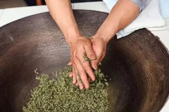 当茶叶达六七成干时,大约在15分钟后,锅温在50~60°C时开始搓团。