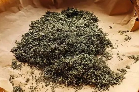 锅温约30~40°C 且当达叶达八成干左右时,采用轻揉、轻炒手法达到固定形状,蒸发水分的目的;当九成干左右时,起锅将茶叶摊放在桑皮纸上,连纸放在锅上文火烘至足干,全程约为40分钟左右。