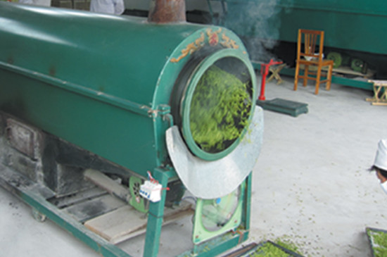 滚筒杀青机是目前在市场上应用比较广泛的一种。一般来说杀青的温度控制在180-220度之间,当然根据茶叶制作的种类不同,温度也有一定的区别,有的杀青机的温度甚至可以达到350-450度。鲜叶在滚筒内需要经历2.5-3.5分钟的杀青过程。杀青的时候要注意观察杀青程度,并且根据杀青程度来调整投叶量的多少。