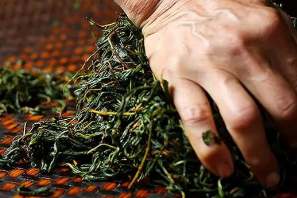 揉捻是红茶制作工序中的第二步,一般情况下都是通过人工手动揉捻,时间要控制在70-90分钟之间,揉捻茶叶的主要作用是通过破坏茶叶表面的细胞组织让茶汁溢出,从而形成光泽油润的外观。