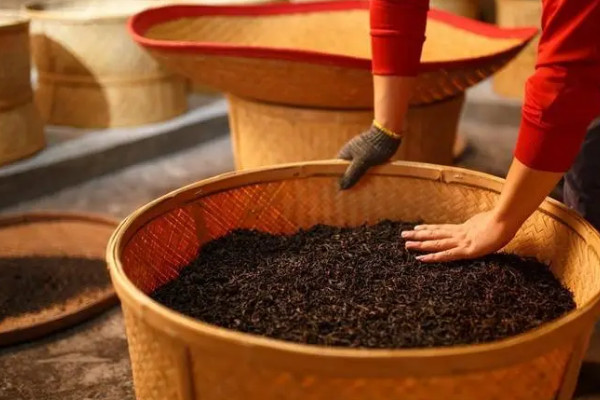 揉捻后的红茶茶叶即可进入下一步骤,将所有茶叶放入在发酵框或发酵车中,放入环境温度22-30度的发酵室进行发酵,相对湿度需要达到90%,红茶只有经过完整的发酵,才能形成色、香、味品质的特色,让茶叶最大限度的形成茶黄素和茶红素。