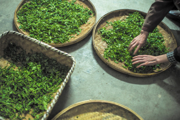 茶叶炒制之前需要清理采摘的茶叶,先用清水清洗2-3遍,把藏在茶叶中的小虫子和碎屑完全清理干净,放在太阳下或是阴阳处,等待水分完全晾干后挑出不完整的茶叶,然后才能开始炒制。