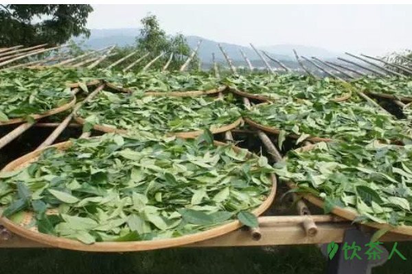 鲜嫩的茶叶清洗后,需要均匀的摊放在竹篾上,摊晾的主要目的是让鲜叶中的水分自然蒸发,蒸发后才能进入下一步的步骤,根据茶叶的状态摊晾6-8小时不等,期间每隔1.5-2小时反转一次竹篾上的茶叶,促使每一片叶都能自然萎凋。