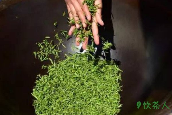 经过以上步骤,手工制茶就剩下最后一个步骤干燥,这是为成品茶造型的的工序,将锅烧热并倒入茶叶,再次用双手进行翻炒,根据想要的外形要求控制火候和干燥力度,等待茶叶变为八成干、触摸有毛刺的感觉代表制茶成功,晾凉后即可装袋。