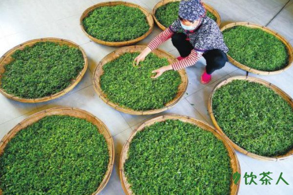 采摘好的白茶制茶原料均匀的摊放在竹匾上,保证厚薄均匀,期间先不要翻动,一般凡在室内阴凉的位置,不能直接放在阳光下接受光照,此时的鲜叶只需要挥发少部分水分即可,如果直接放在阳光摊晾不利于茶叶后续的制作。
