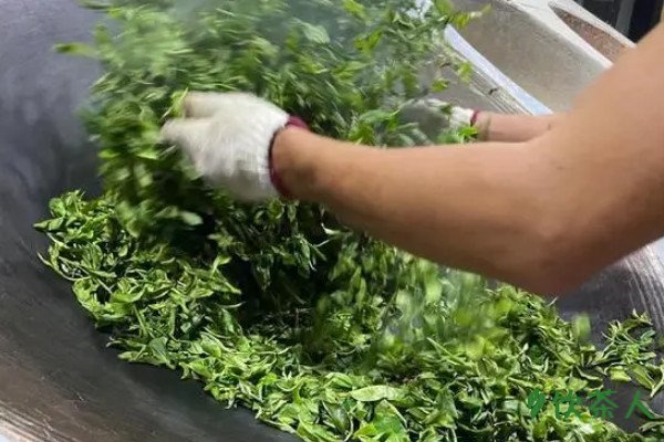 揉捻是整个制茶工序中的第四个步骤,杀青后的绿茶可以平铺在容器上,直接用双手揉捻,破坏内部的细胞,让茶叶内部的茶汁被挤压出来,粘附在茶叶表面,也能把杀青后的茶叶放入专门的揉捻机,揉捻度达到85%即可。