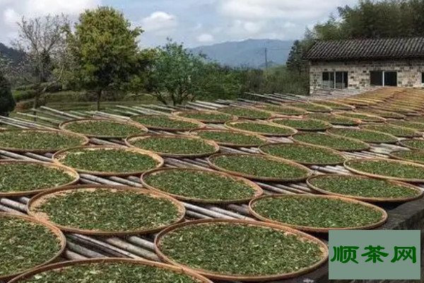 红茶鲜叶筛选好之后,将茶叶均匀铺在竹篾上,厚度不能超过7厘米,萎凋的目的是为了降低茶叶中的水分,让茶叶的张力降低,同时也能让茶叶变得更加有人性,内质逐渐发生变化,这一步是红茶成品茶打下基础。