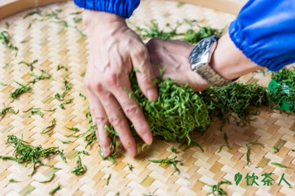 鲜嫩的茶叶经过杀青的步骤之后,第四步是揉捻,一般不会选择用机器,而且直接用双手朝顺时针的方形揉捻,达到破坏茶叶细胞,促使茶茶汁被迫挤出,然后粘附在茶叶外层,外层的茶汁是冲泡中茶汤滋味的来源之一,彻底揉捻后的茶叶能看出基本的茶形。