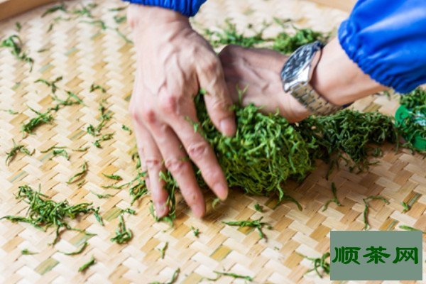经过充分萎凋的红茶可以进入揉捻的步骤,这是通过外力塑造茶形的方式,用双手将竹篾上的茶叶朝顺时针的方向手动揉搓,使其内部的细胞稍微破碎,茶形变成蜷缩的粒状,揉捻结束后要把成团结块的茶叶分开接触空气,释放茶色和香气。