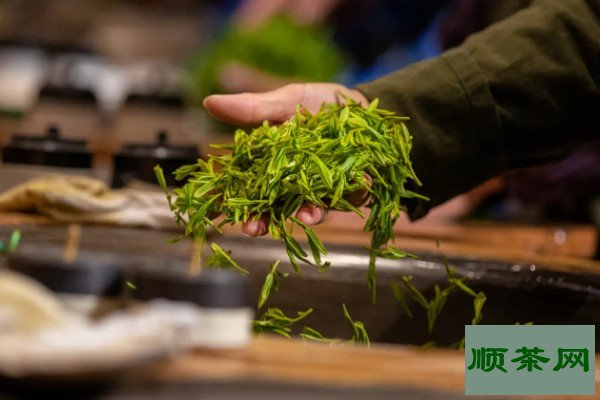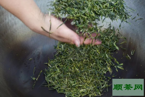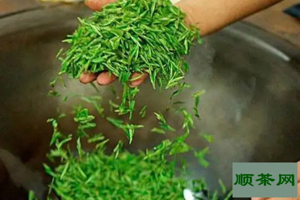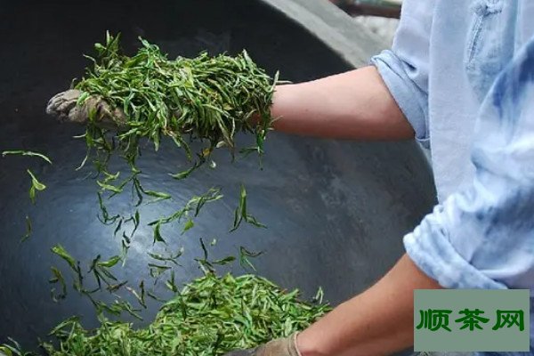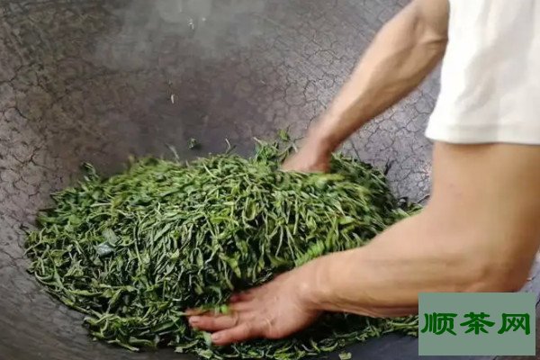 等待锅烧热就能把采摘好的新鲜茶芽全部倒入锅中,此时调成小火,直接用双手进行翻炒,不需要借助工具,另外炒茶的动作一定要快,避免茶叶出现被炒焦的情况,只所以不用工具炒茶是因为使用工具不能很好的掌握力度,会破坏茶叶的完整性,。