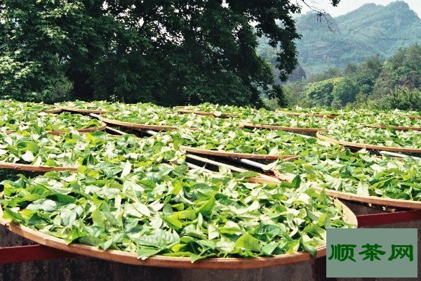 乌龙茶是半发酵的茶叶种类,按照相关要求采摘制茶后,需要进行萎凋,把鲜嫩的茶叶放置在温度和湿度符合要求的位置均匀摊放,然后茶叶鲜叶酶活性得促进和提升,用时鲜叶中水分也会被适量蒸发,从鲜活变为萎蔫的暗绿色。