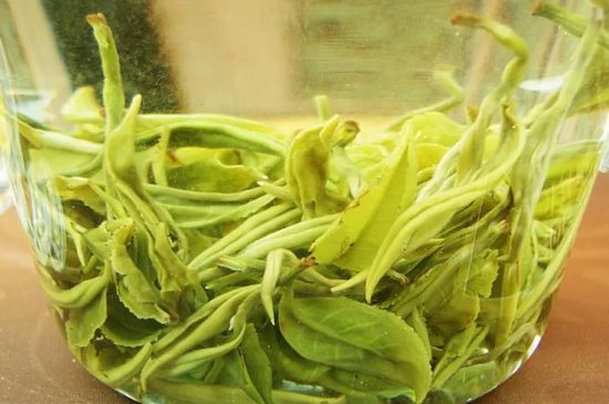 桐柏玉叶属于绿茶类,外形扁平光滑,芽毫隐藏,色泽绿翠油润,汤色杏绿清澈,滋味鲜,醇厚,香高持久,叶底嫩绿明亮,有不亚于“西湖龙井”的美称。